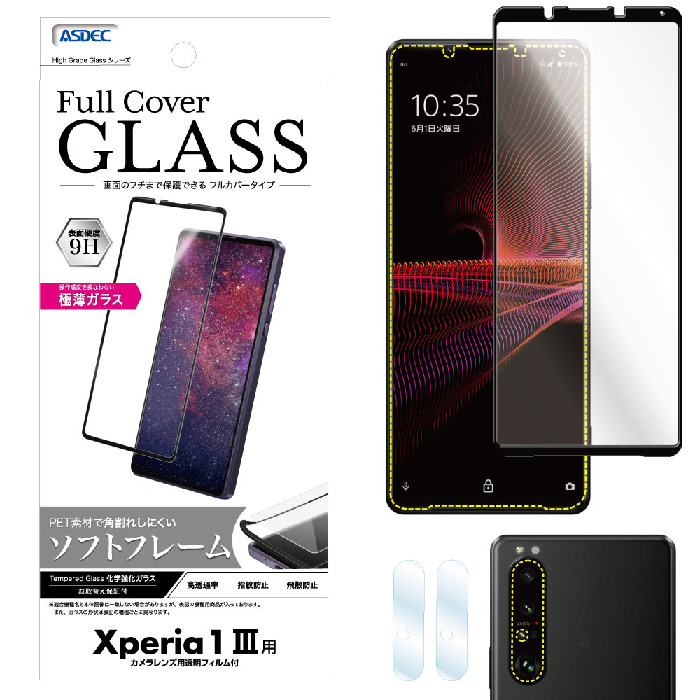 【 Xperia 1 III 用】 High Grade Full Cover Glass 強化ガラスフィルム 保護フィルム アスデック