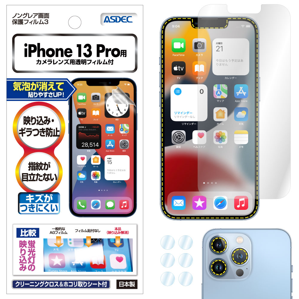 【iPhone 13 Pro 用】ノングレア画面保護フィルム3 アスデック