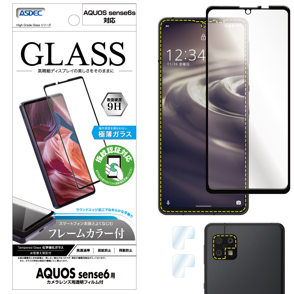 【 AQUOS sense6 / AQUOS sense6s 兼用】 High Grade Glass フレームカラー付 強化ガラスフィルム アスデック