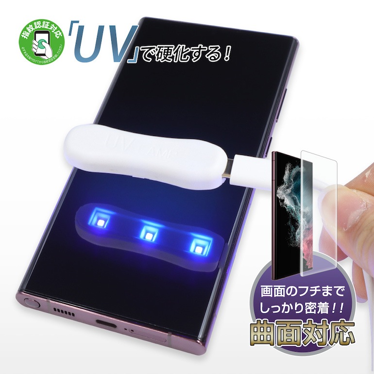 【 Galaxy S22 Ultra 用】 曲面対応 UVキュアリングフィルム UV硬化 わん曲 エッジ対応 アスデック