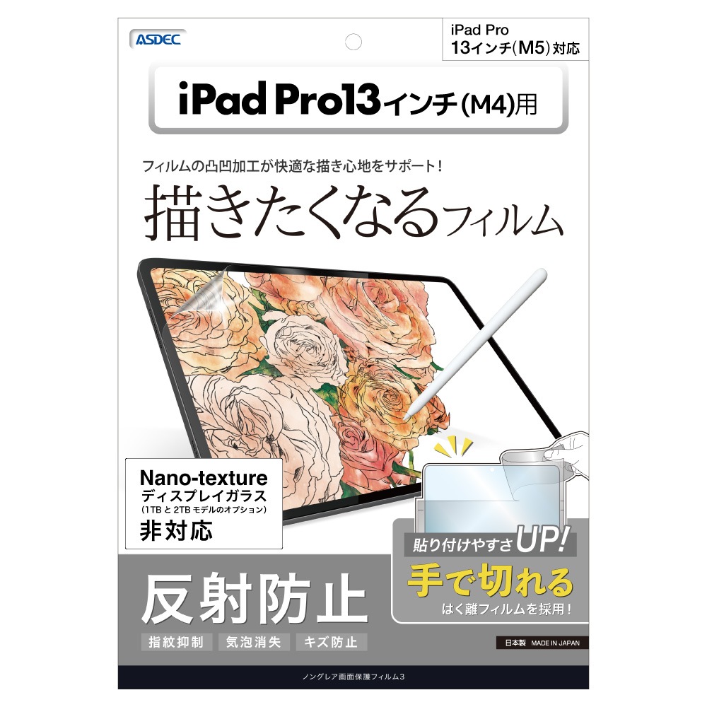 【iPad Pro (M5/M4) 13インチ 用】ノングレア画面保護フィルム3 アスデック