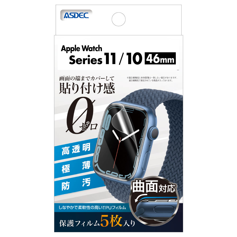 【Apple Watch Series11 Series10 用】5枚入 曲面対応 TPU保護フィルム アスデック
