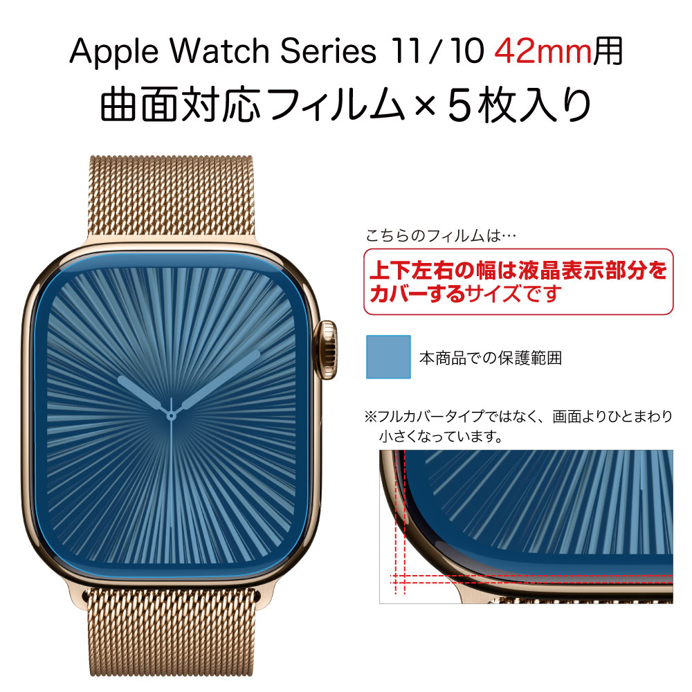【Apple Watch Series11 Series10 用】5枚入 曲面対応 TPU保護フィルム 保護フィルム アスデック