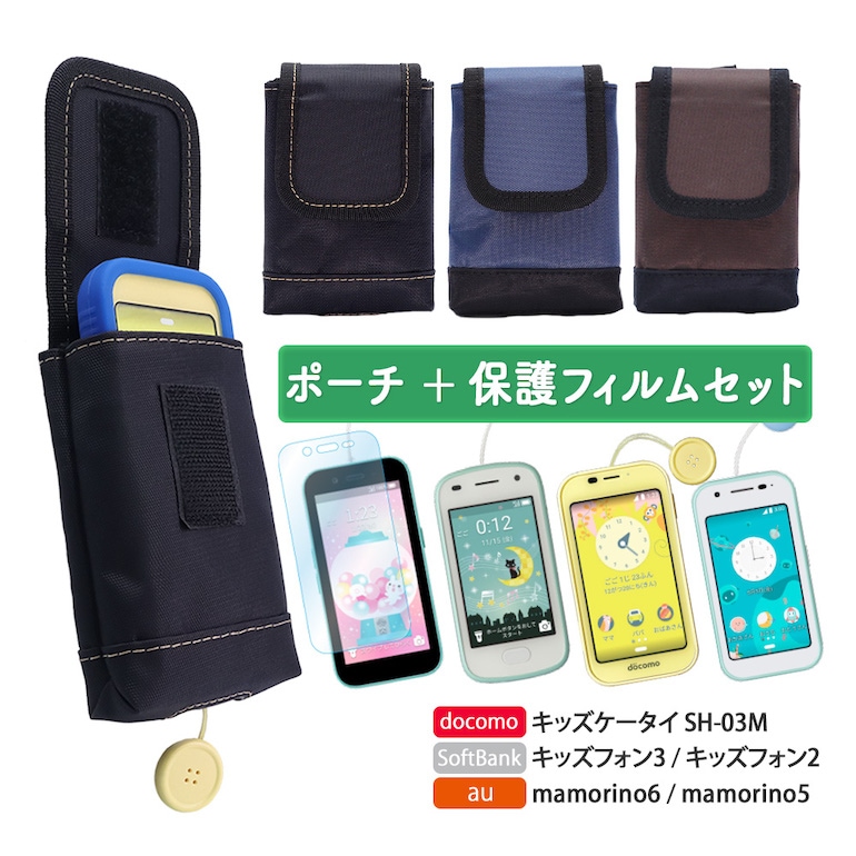 【ポーチ+フィルム セット】ジュニア用ケータイポーチ キッズケータイ mamorino キッズフォン