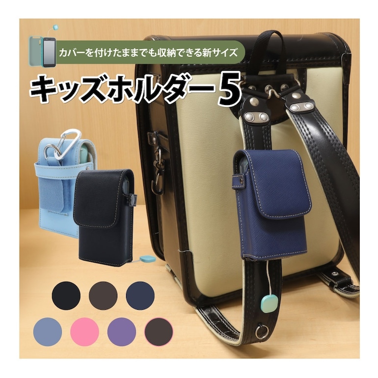 【選べる7色】カラビナ付きキッズ用ホルダー5 カバーを装着したまま収納可 ランドセル装着